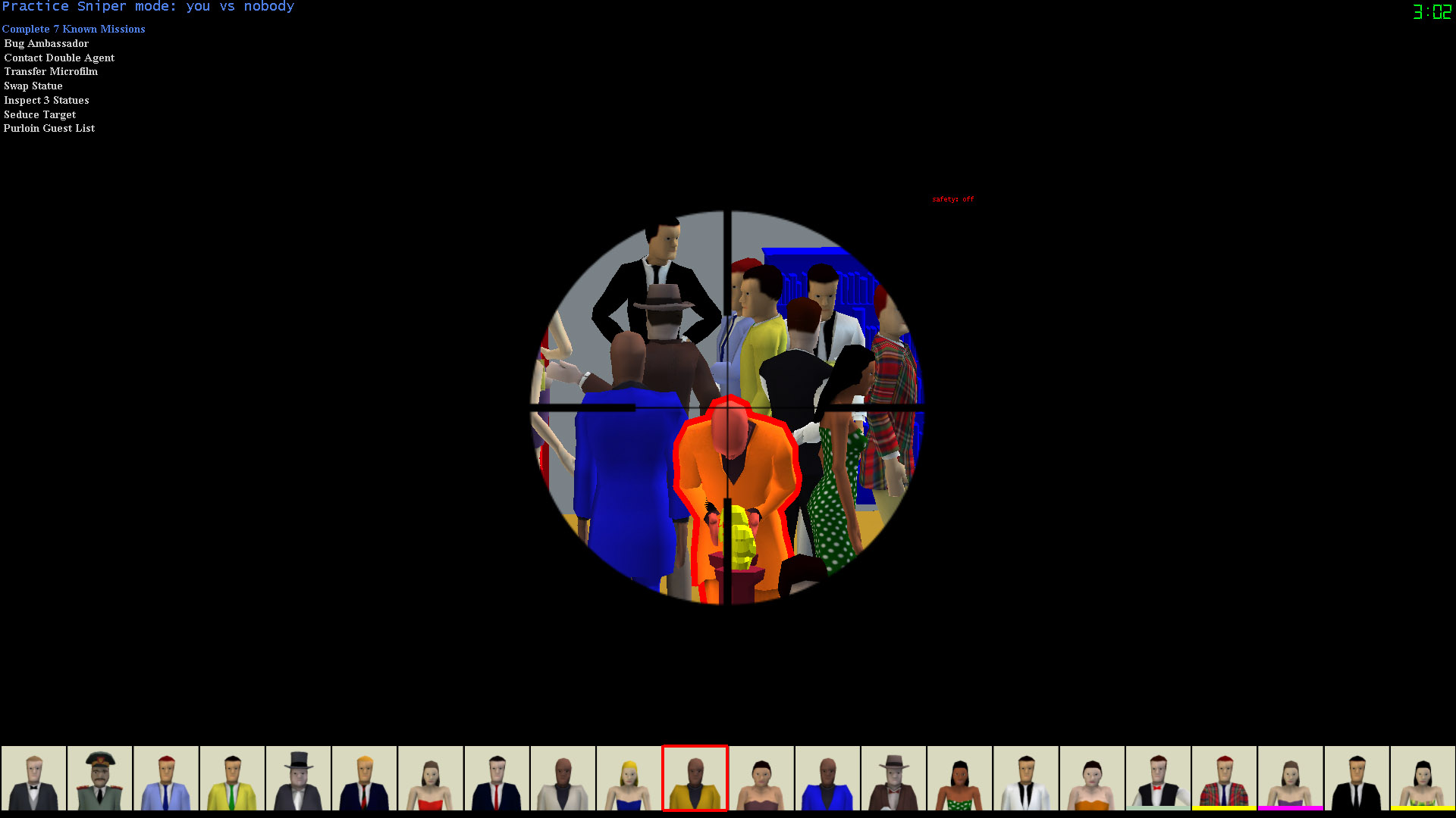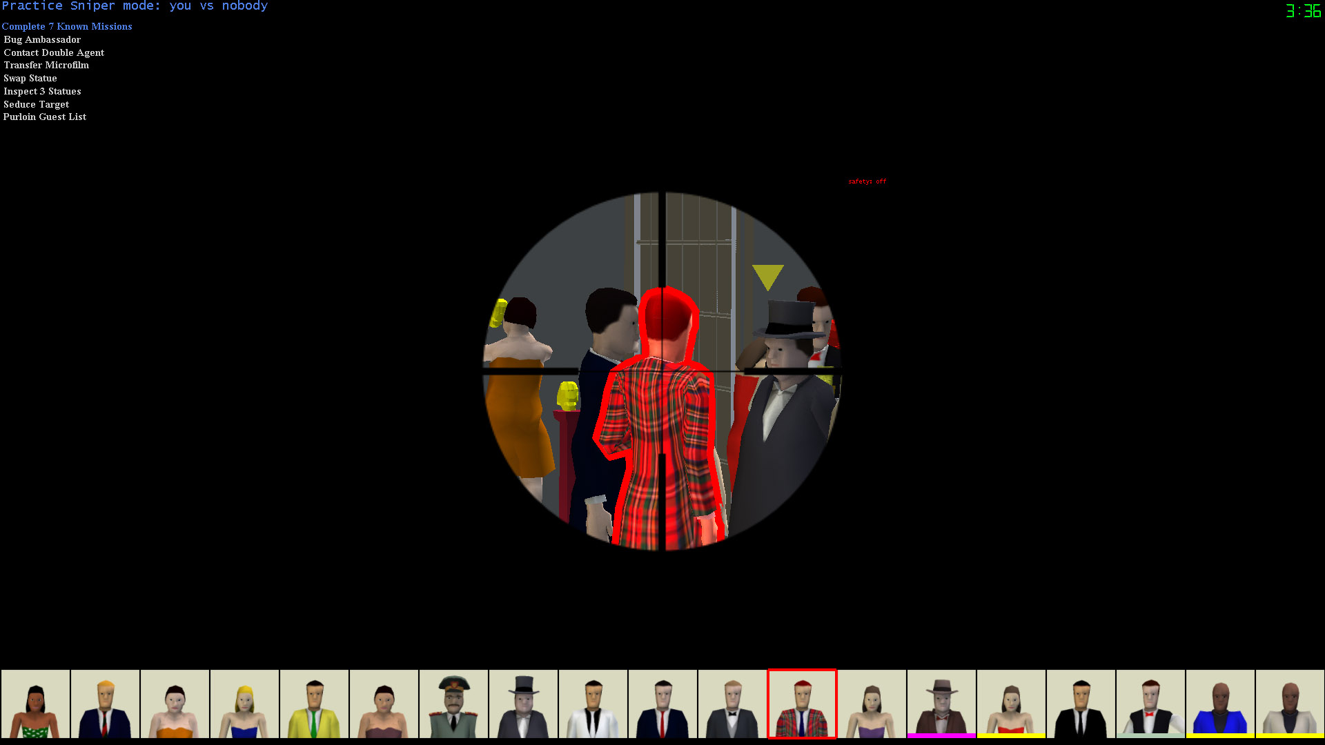 I must face facts: I am not very good at sending out update emails to the SpyParty beta testers. When you sign up for the Early-Access Beta, you get put on the private “beta announcement” mailing list, which is where I’m supposed to send, well, announcements about the beta. However, the last mail I sent to that list was June 3rd, 2013, about load testing while the beta was still closed! I mean, there’s obviously such a thing as too much email, but one email per year is probably not it. I post in the private beta forums every day, and obviously I’m active here on the blog and on twitter and facebook, but everybody has a different way they like to get information so neglecting the mailing list is kinda dumb of me. Apparently I didn’t send mail about the new character art, or the new environment art, or the Panopticon level, or the Purloin Guest List mission, or any of that yummy stuff.